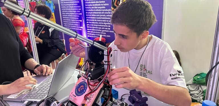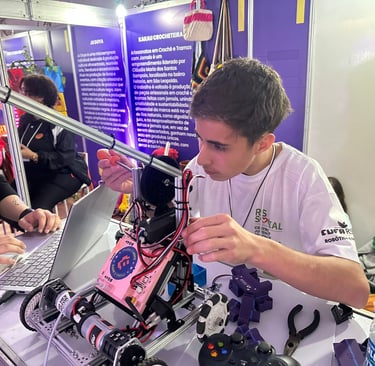 A Expo Favela RS 2025 também foi palco da Competição de Robótica e Inteligência Artificial com 70 jovens entre eles equipes dos Centros de Juventude Reconstrução de Alvorada, Canoas, Passo Fundo, Santa Maria, Porto Alegre e equipe convidada de Frederico Westphalen.